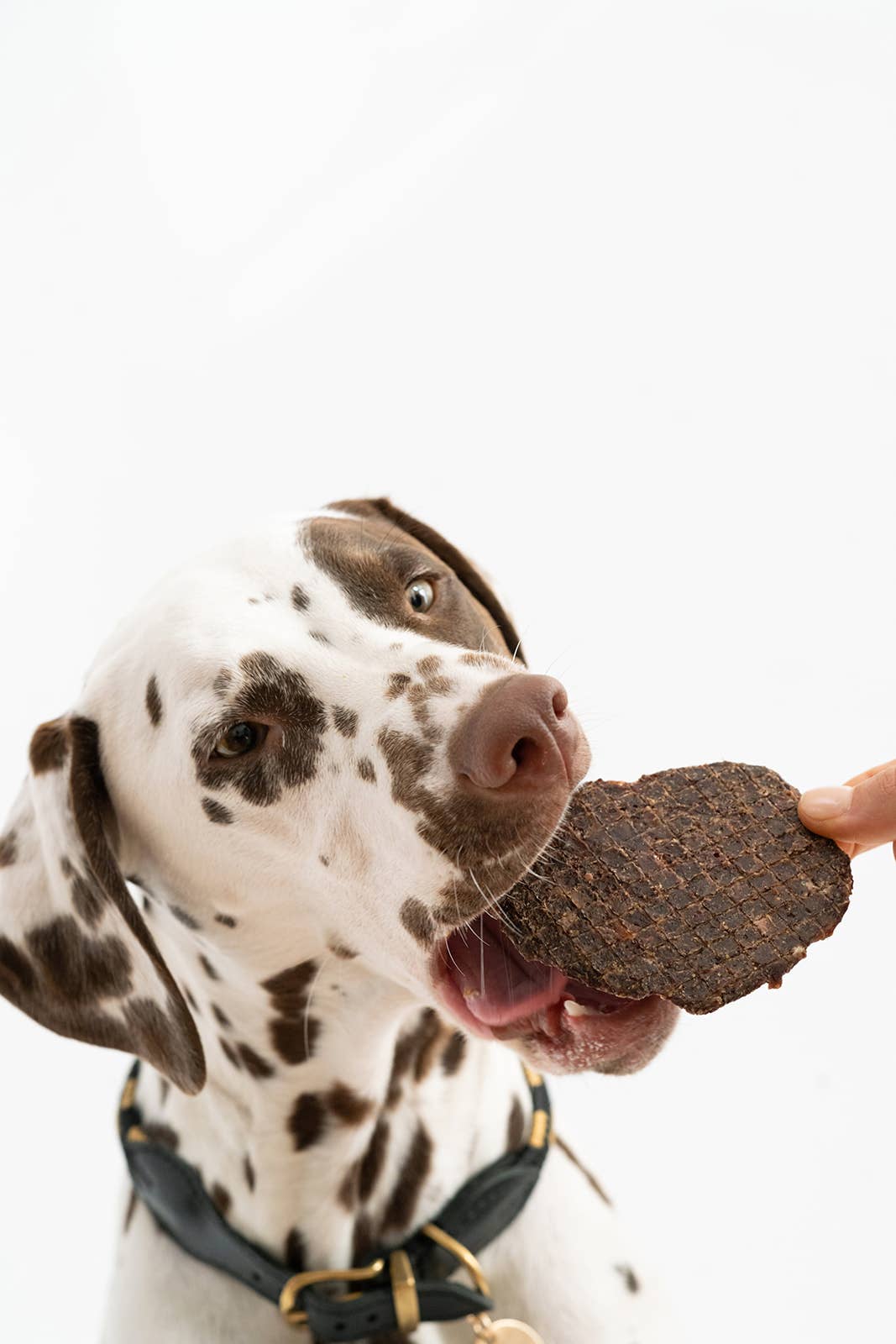 Introducing our Turmeric Bison Jerky! Just two ingredients, tons of flavor, and sure to please your pup. Made with Colorado grass-fed bison and organic turmeric. Turmeric is a great anti-inflammatory for any senior or active dogs with arthritis or joint pain. Size: 2.5 oz.