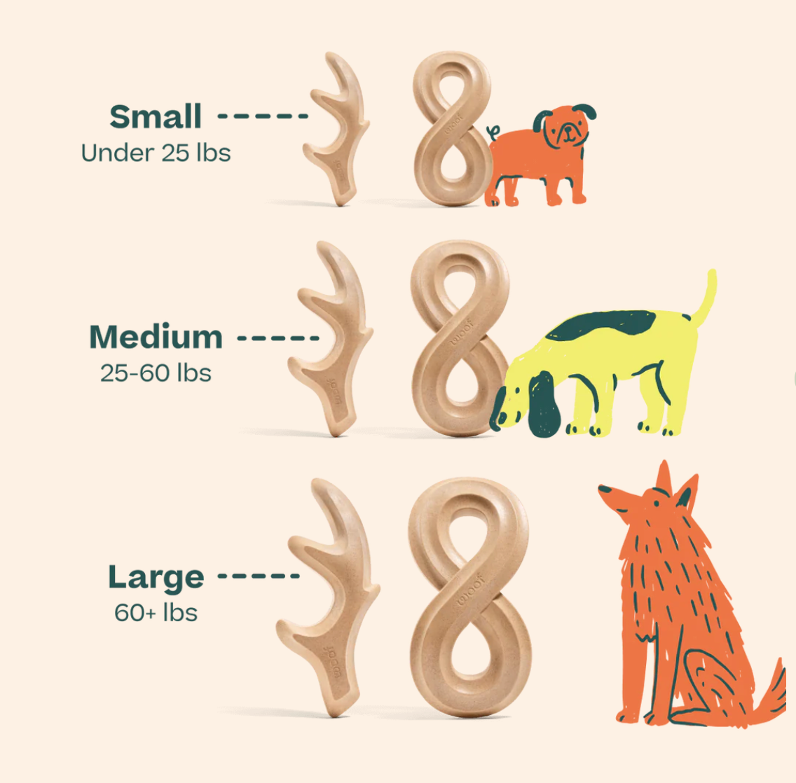 Small = under 25lbs