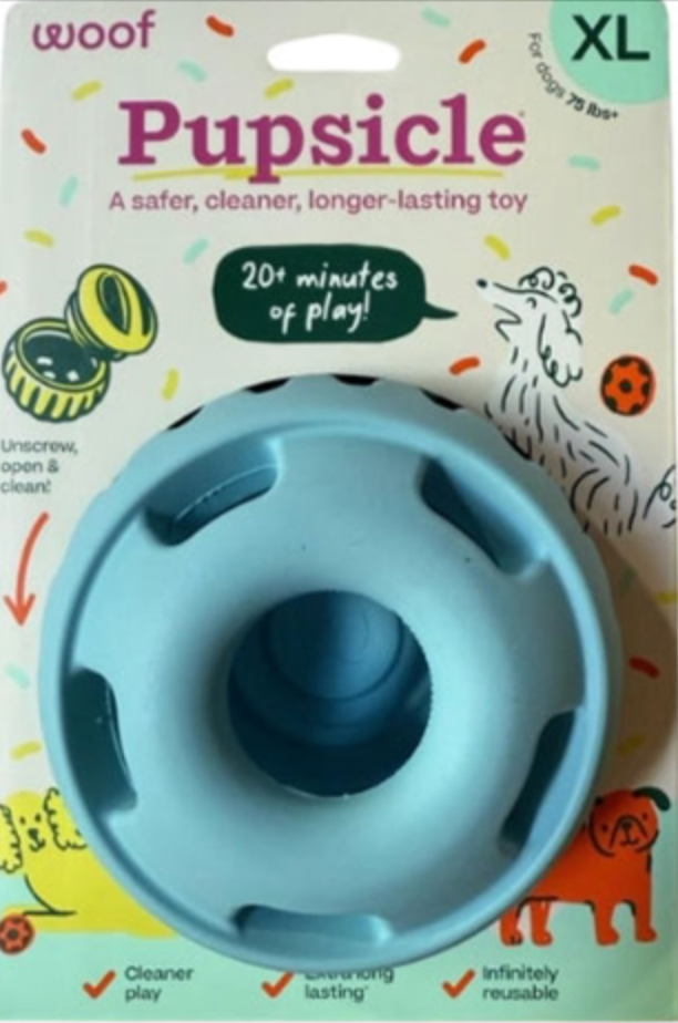 The Pupsicle is a new breed of dog toy: the cleanest, safest & longest lasting enrichment toy on the market. It unscrews to open so it’s a breeze to fill & clean - plus customers can make their own refills with healthy ingredients that dogs love! Simply fill the Pupsicle with our pre-made Pops or use our companion Treat Tray to create the frozen treat of your choice. Peanut butter, canned wet food, yogurt, fruit, and bone broth are just a few of the freezable fillings you can use.